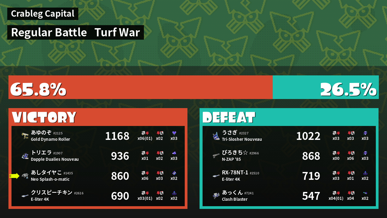 | Mode | Turf War - Regular Battle | ||