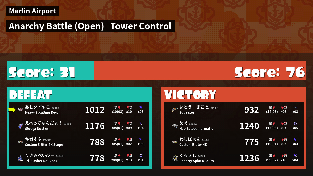 | Mode | Tower Control - Anarchy Battle (Open) | ||