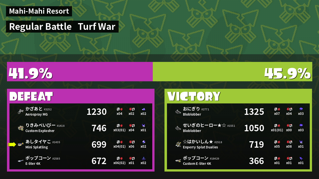 | Medals | #1 Enemy-Base Inker First Splat! #2 Overall Splatter | ||