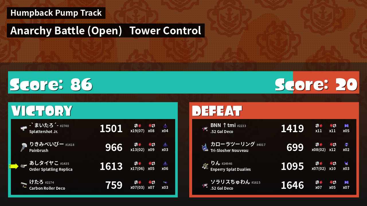 | Mode | Tower Control - Anarchy Battle (Open) | ||