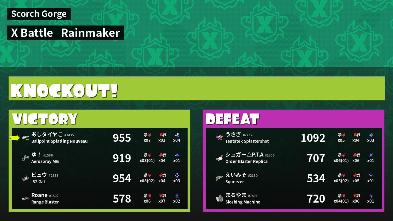 | Medals | #1 Turf Inker #1 Super Jump Spot #1 Enemy Splatter | ||