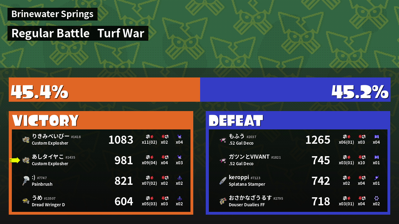 | Mode | Turf War - Regular Battle | ||