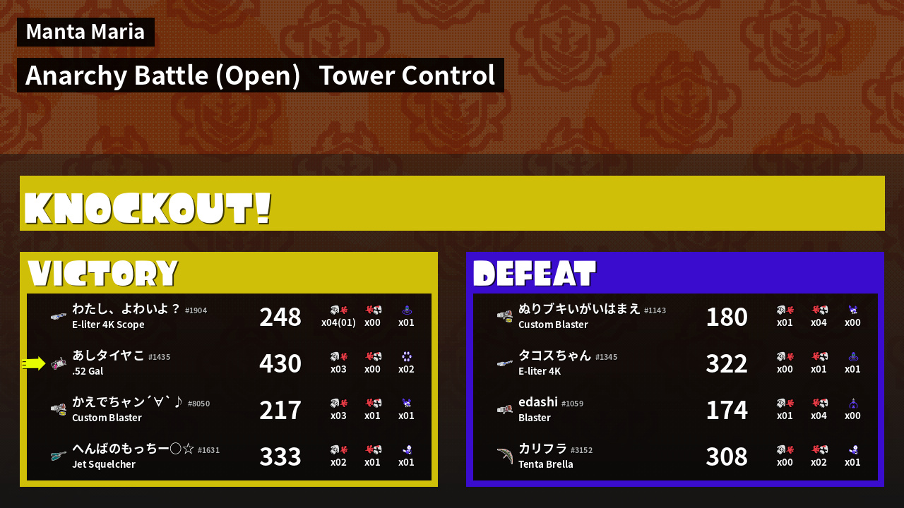 | Mode | Tower Control - Anarchy Battle (Open) | ||