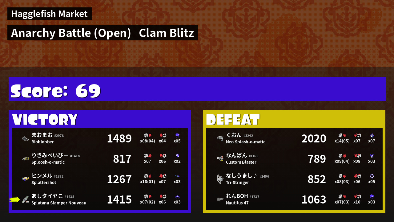 | Mode | Clam Blitz - Anarchy Battle (Open) | ||