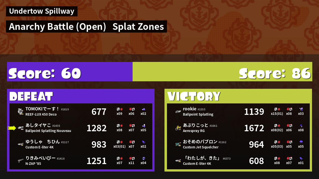 | Mode | Splat Zones - Anarchy Battle (Open) | ||
