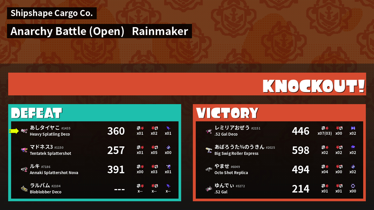 | Mode | Rainmaker - Anarchy Battle (Open) | ||