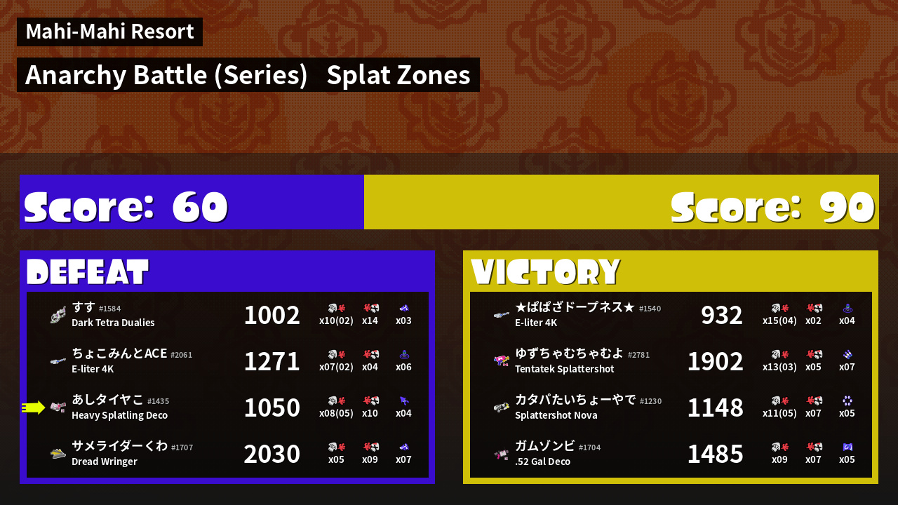 | Mode | Splat Zones - Anarchy Battle (Series) | ||