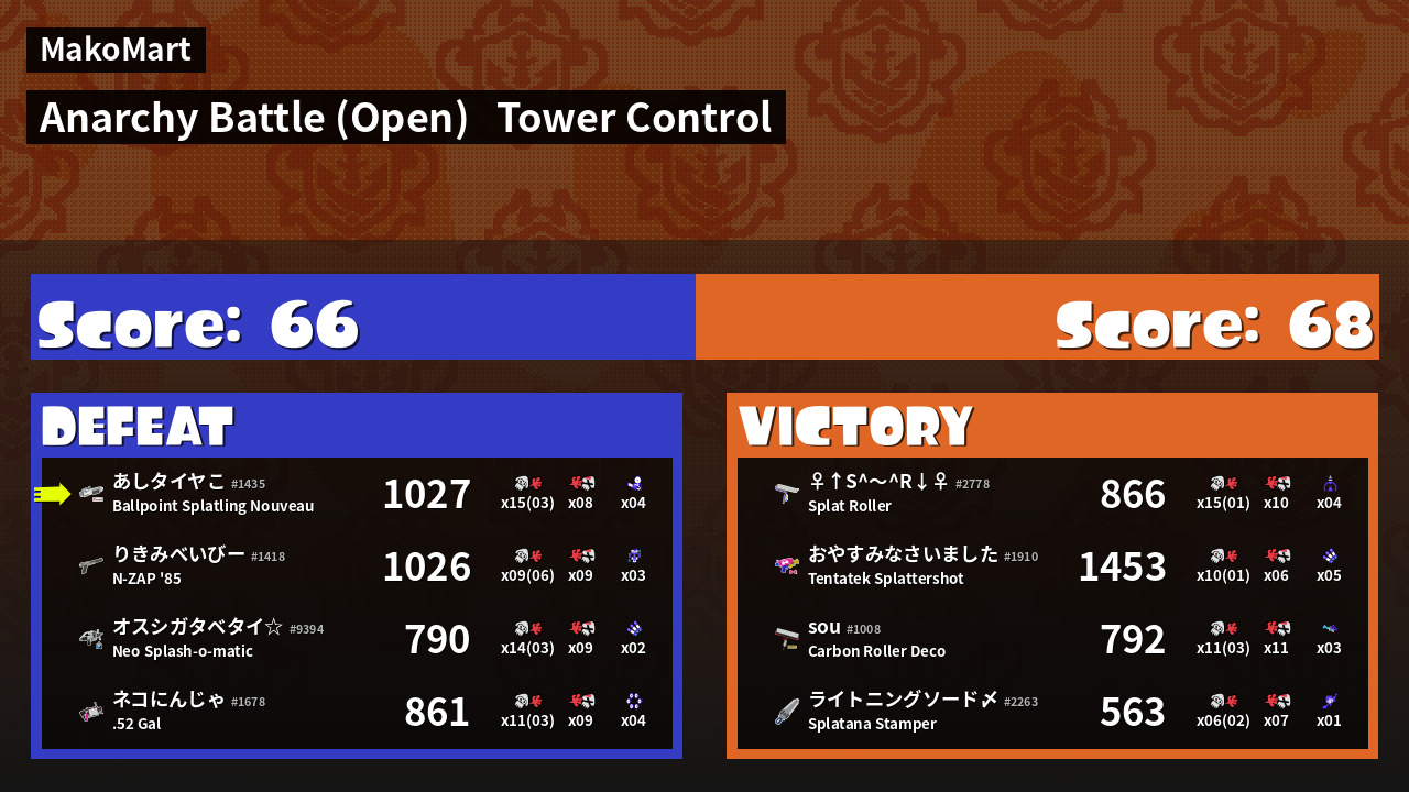 | Mode | Tower Control - Anarchy Battle (Open) | ||