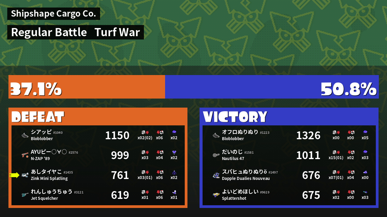 | Mode | Turf War - Regular Battle | ||