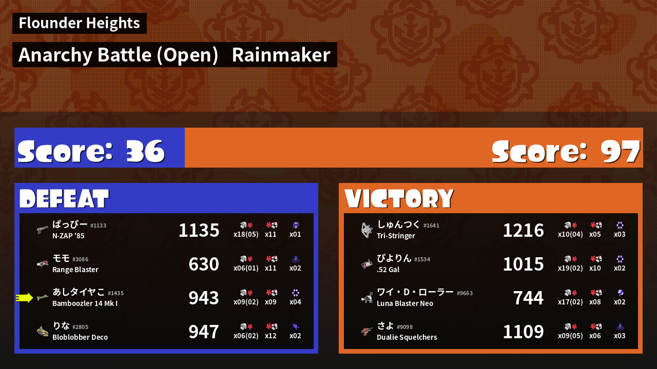 | Mode | Rainmaker - Anarchy Battle (Open) | ||