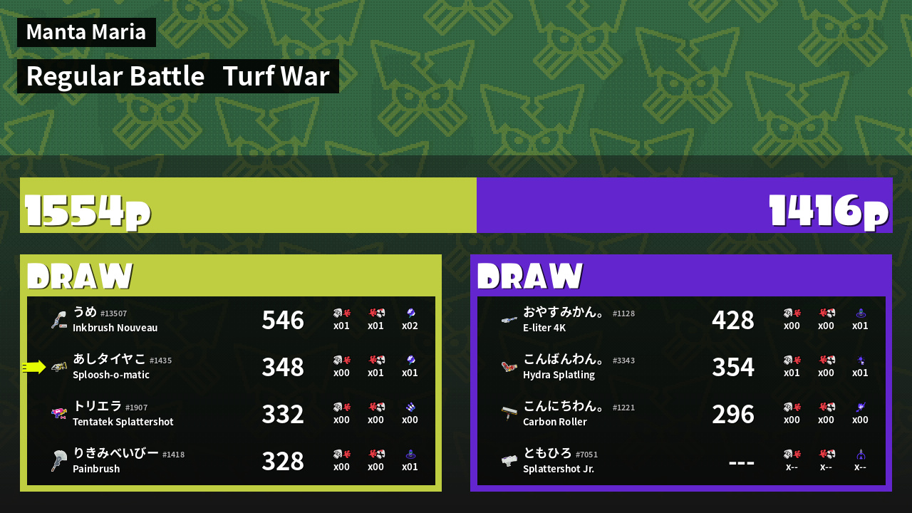 | Weapon | Sploosh-o-matic ( Curling Bomb / Ultra Stamp) | ||