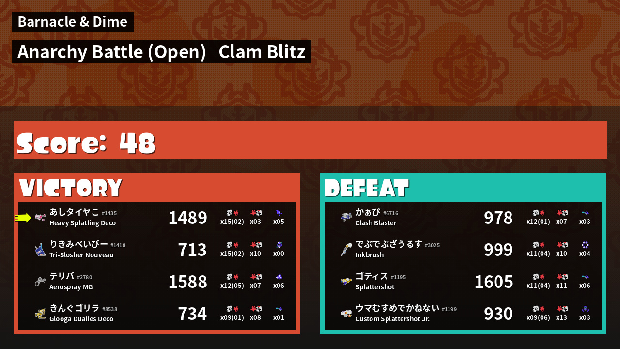 | Mode | Clam Blitz - Anarchy Battle (Open) | ||