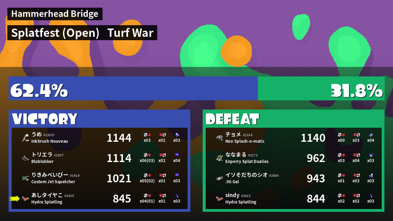 | Weapon | Hydra Splatling ( Autobomb / Booyah Bomb) | ||