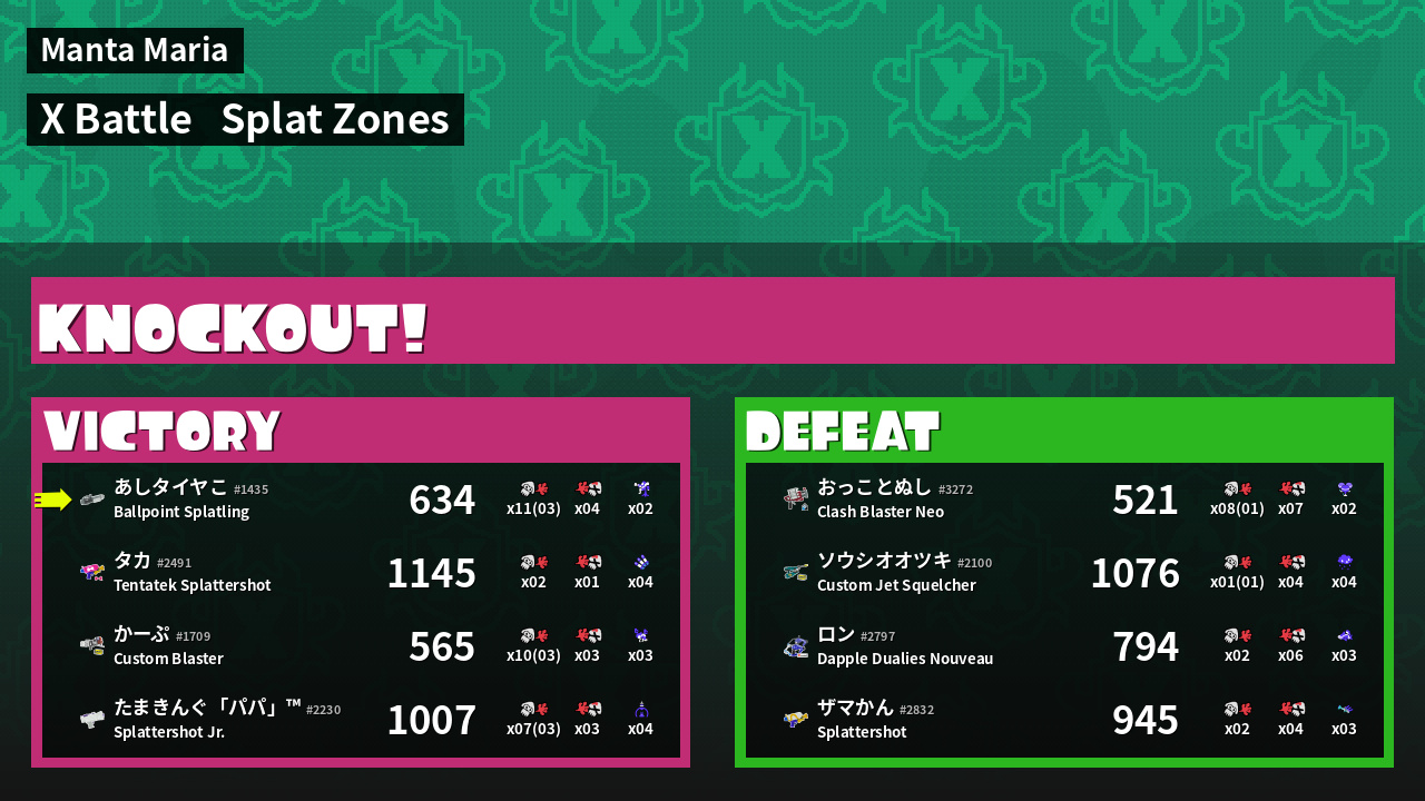| Medals | #1 Overall Splatter #1 Splat Zone Guard #1 Enemy Splatter | ||