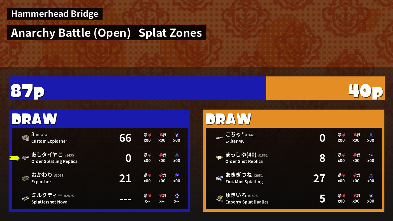 | Mode | Splat Zones - Anarchy Battle (Open) | ||