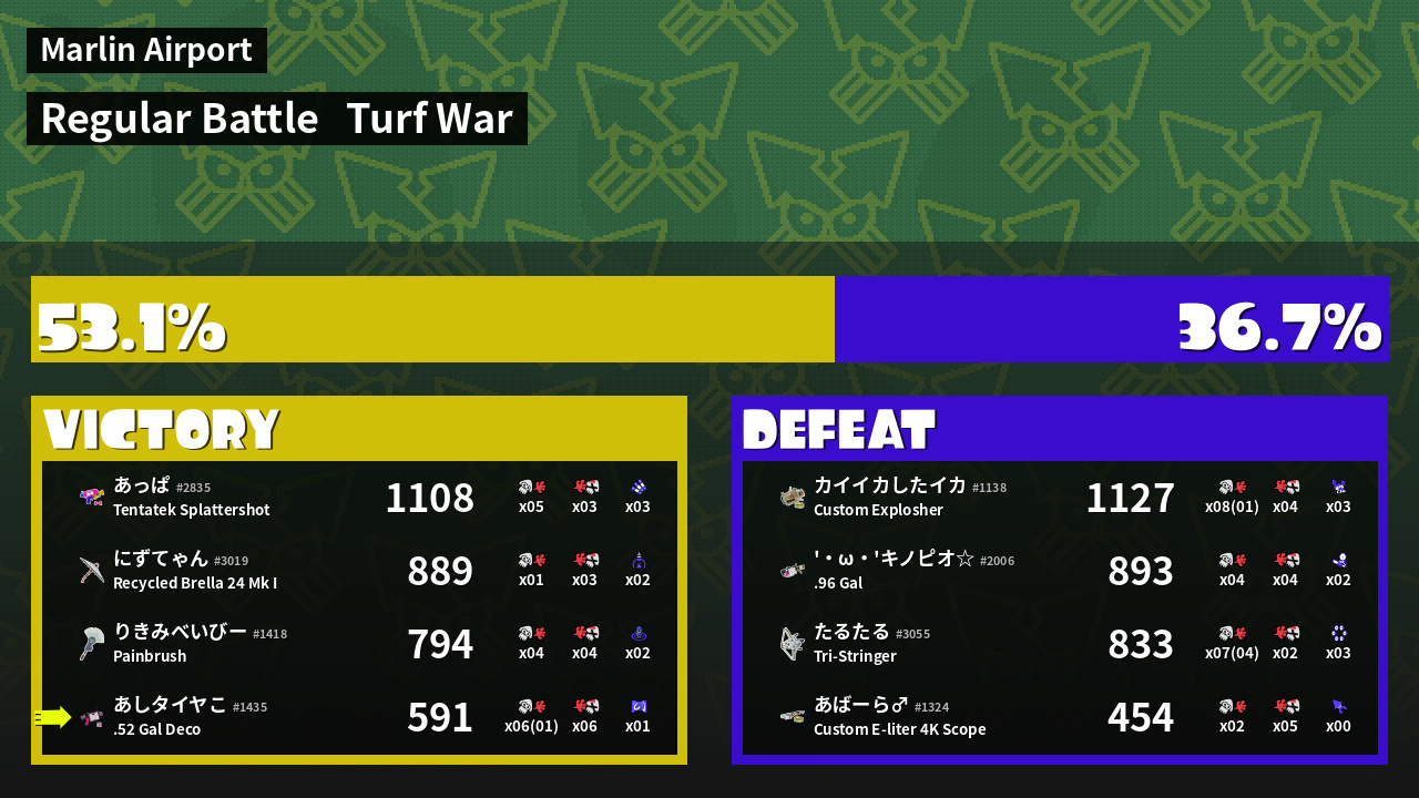 | Medals | #1 Overall Splatter #1 Enemy-Base Inker #1 Enemy Splatter | ||