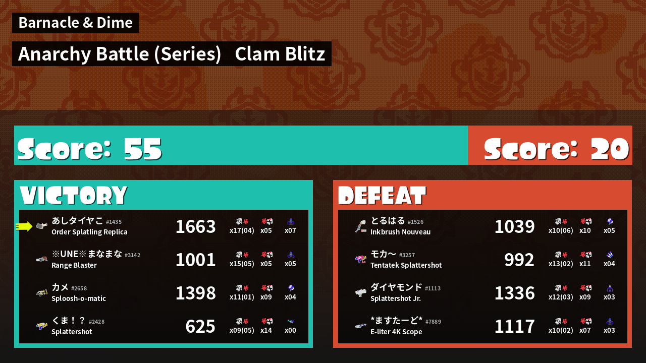 | Mode | Clam Blitz - Anarchy Battle (Series) | ||