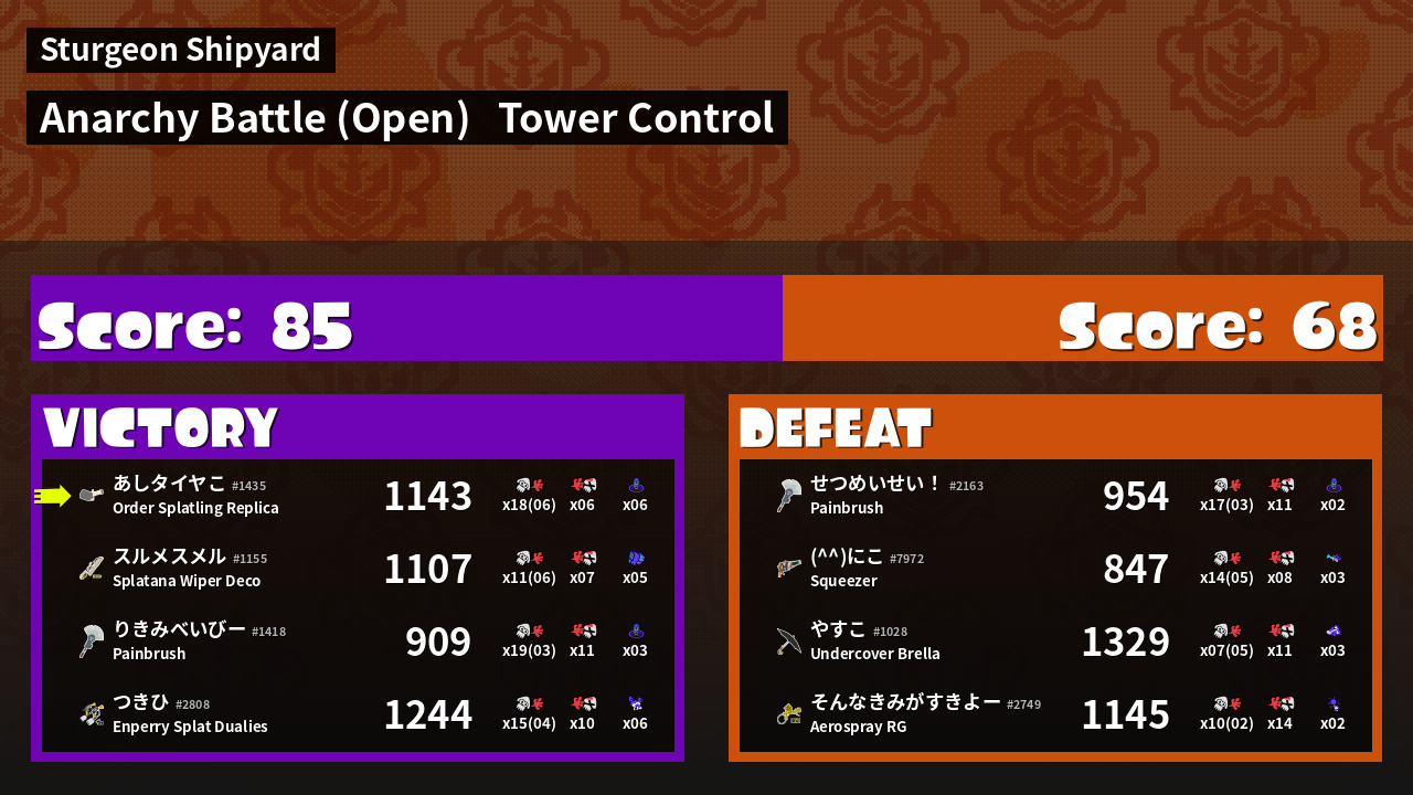 | Mode | Tower Control - Anarchy Battle (Open) | ||
