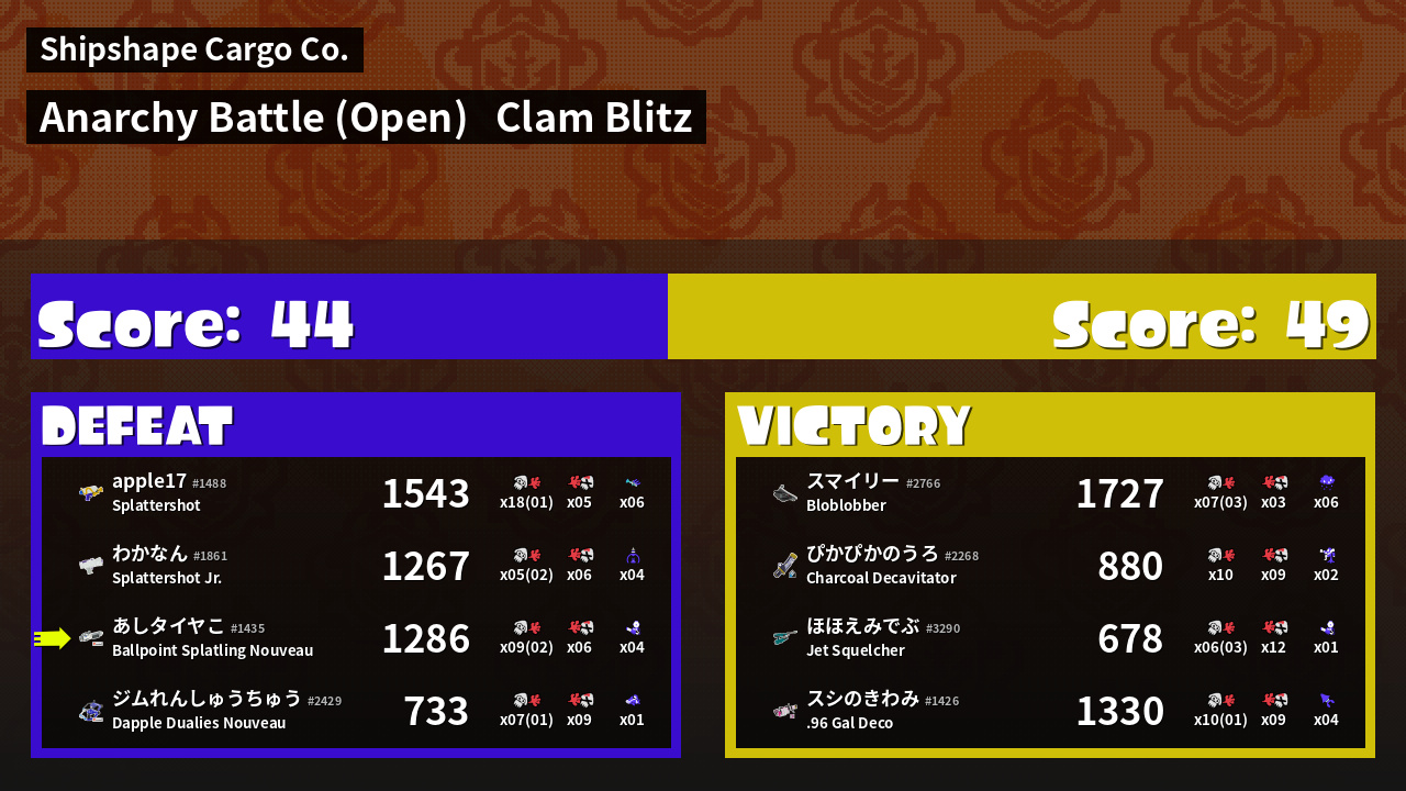 | Mode | Clam Blitz - Anarchy Battle (Open) | ||