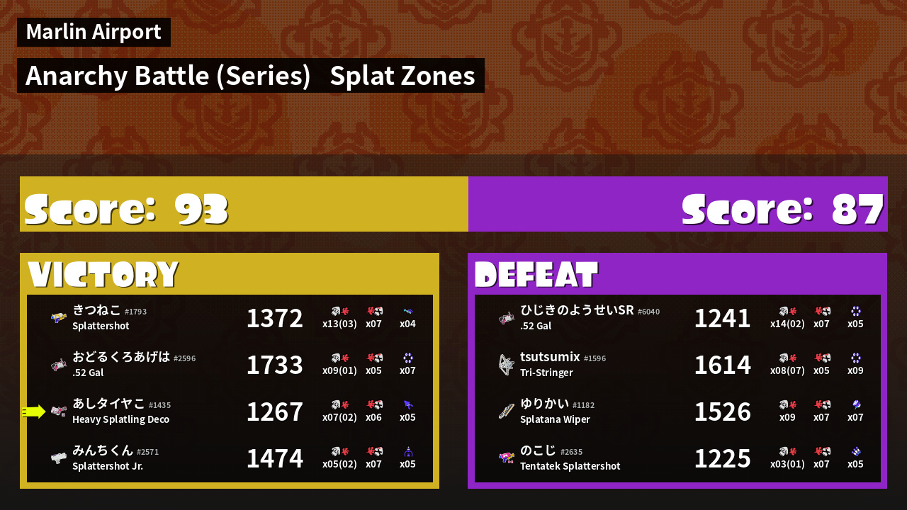 | Mode | Splat Zones - Anarchy Battle (Series) | ||