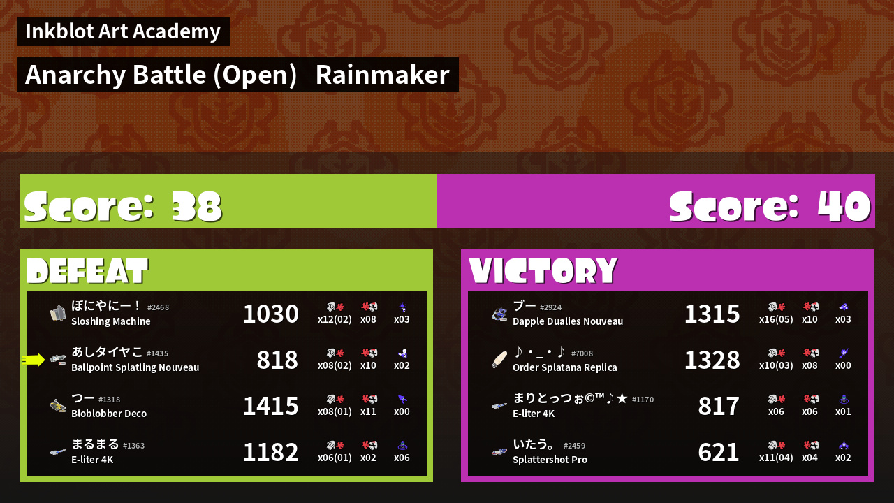 | Mode | Rainmaker - Anarchy Battle (Open) | ||