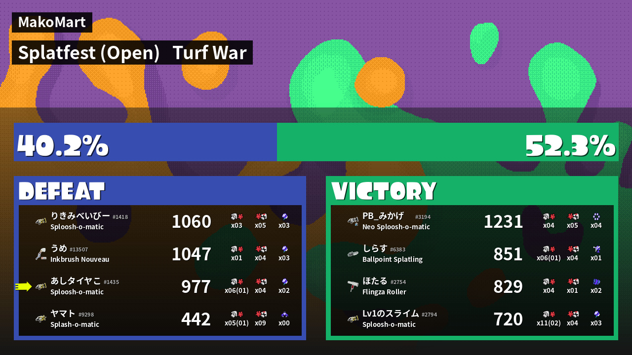 | Medals | #1 Overall Splatter #1 Enemy-Base Inker #1 Super Jump Spot | ||