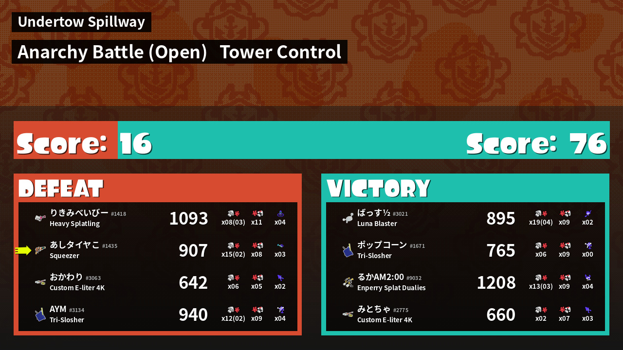 | Mode | Tower Control - Anarchy Battle (Open) | ||