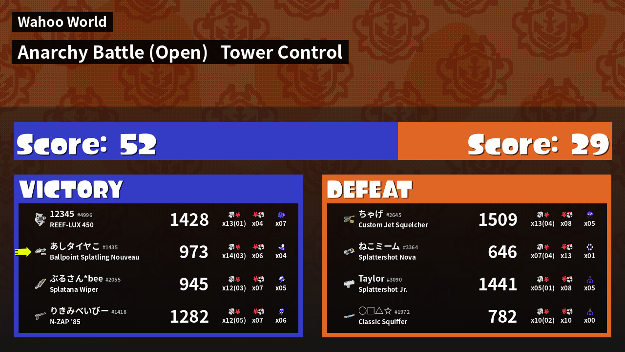 | Mode | Tower Control - Anarchy Battle (Open) | ||