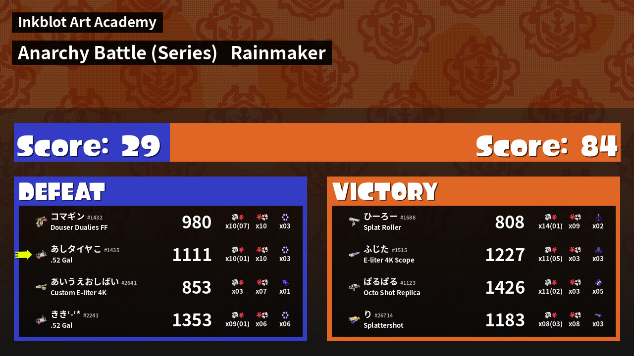 | Mode | Rainmaker - Anarchy Battle (Series) | ||