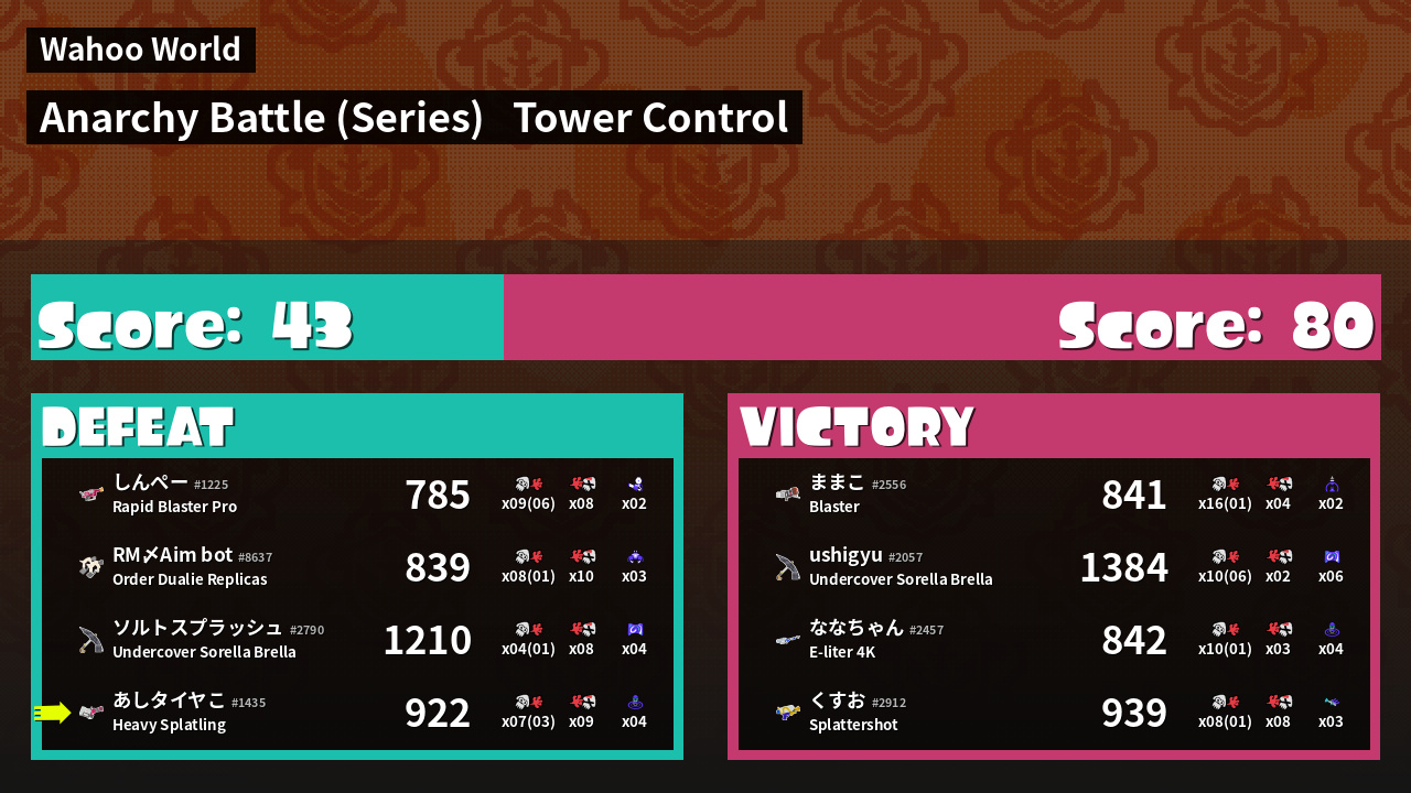 | Medals | #1 Tower Stopper First Splat! #1 Wave Breaker User | ||