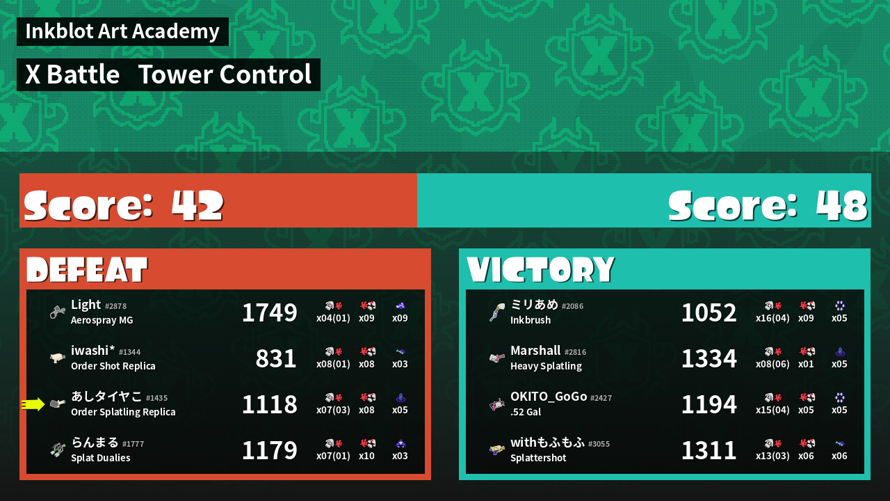 | Medals | #1 Splat Assister #1 Tower Stopper #1 Wave Breaker User | ||