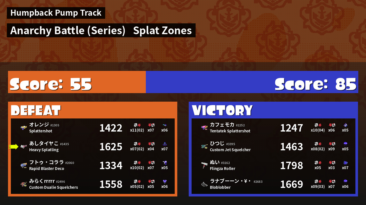 | Mode | Splat Zones - Anarchy Battle (Series) | ||