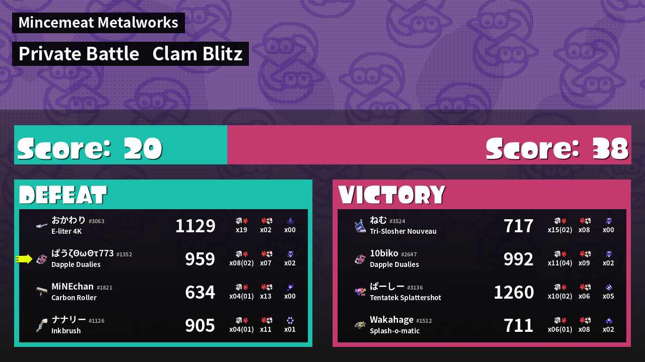 | Medals | #1 Score Booster #1 Clam Carrier #1 Splat Assister | ||