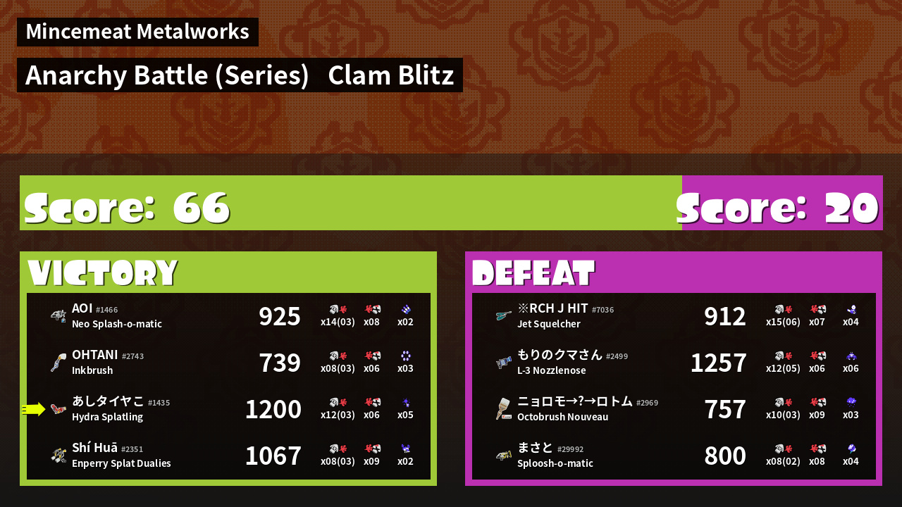 | Mode | Clam Blitz - Anarchy Battle (Series) | ||