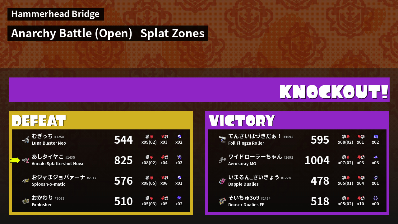 | Mode | Splat Zones - Anarchy Battle (Open) | ||