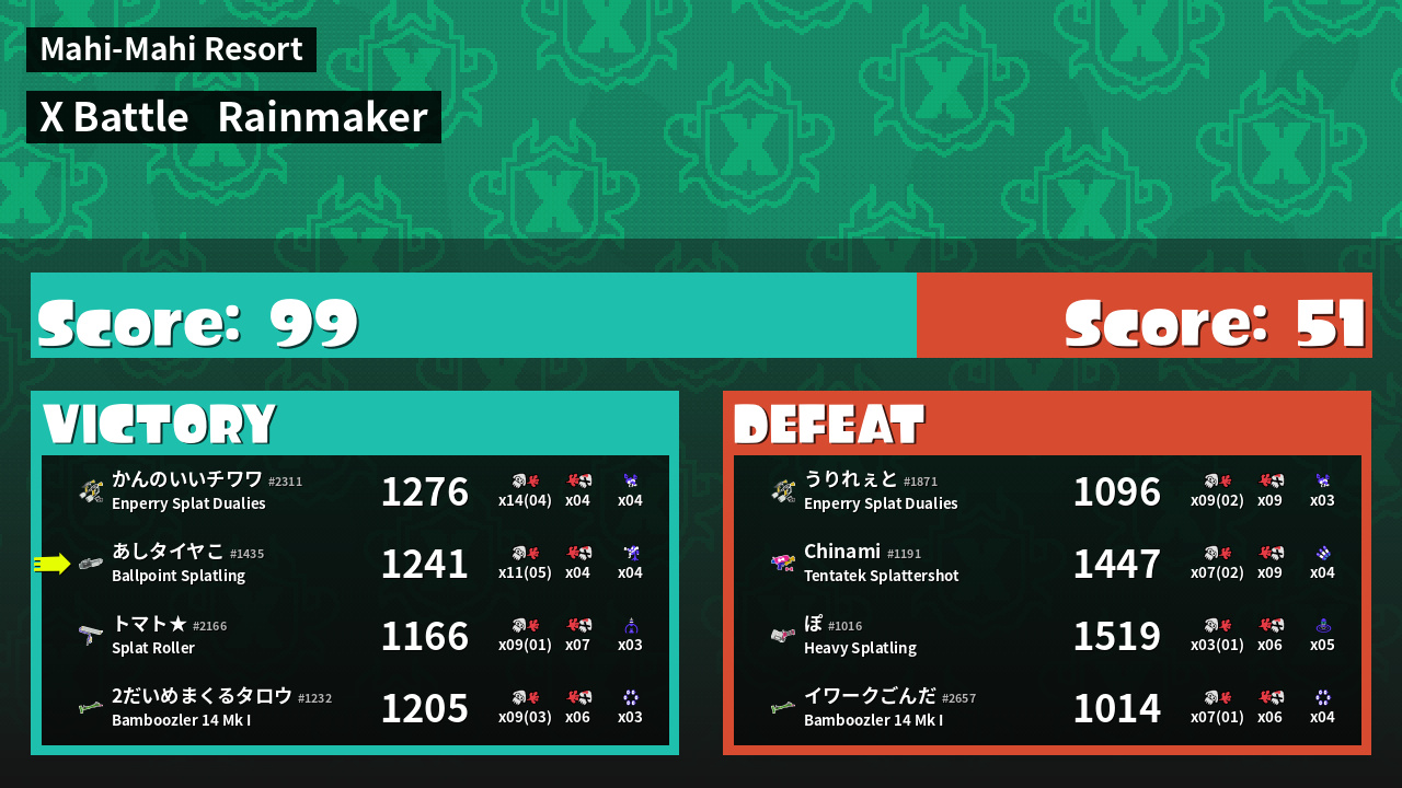 | Mode | Rainmaker - X Battle | ||