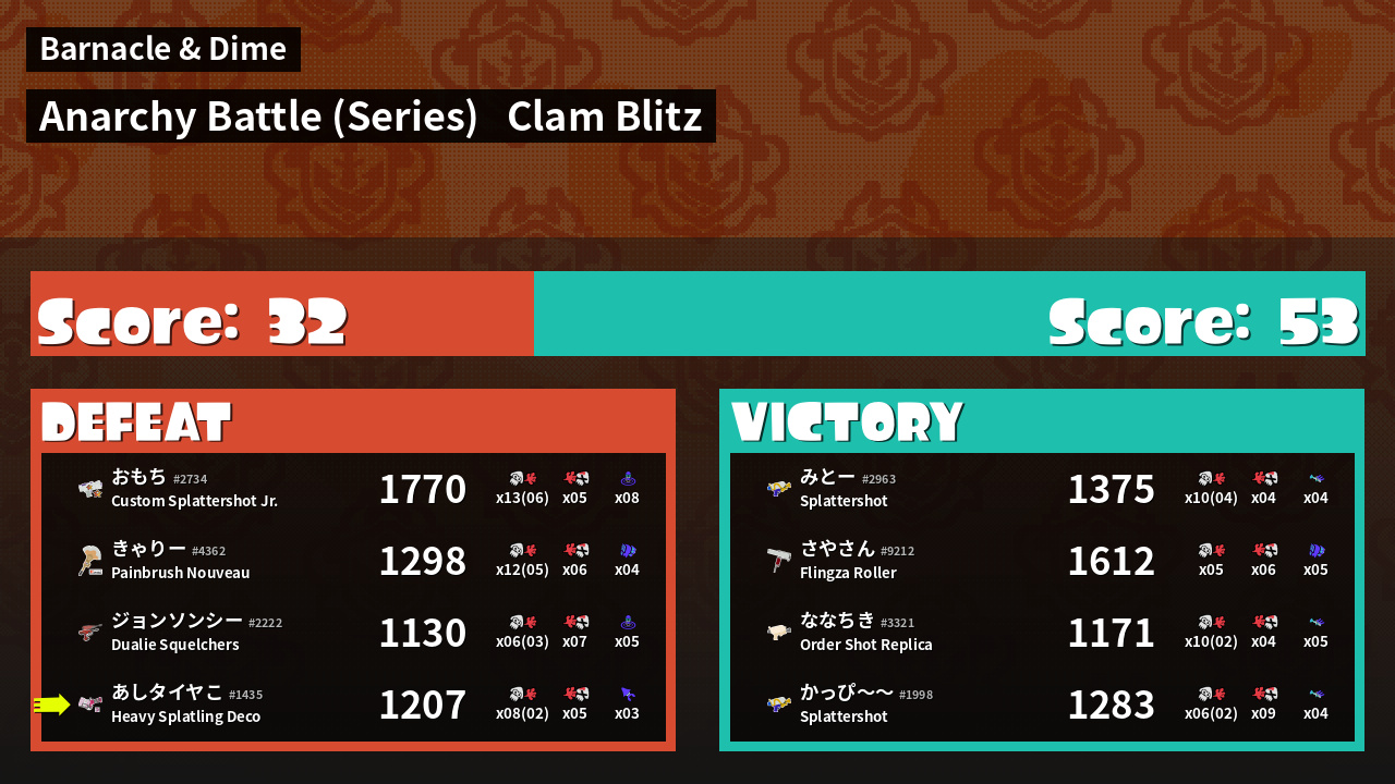 | Mode | Clam Blitz - Anarchy Battle (Series) | ||