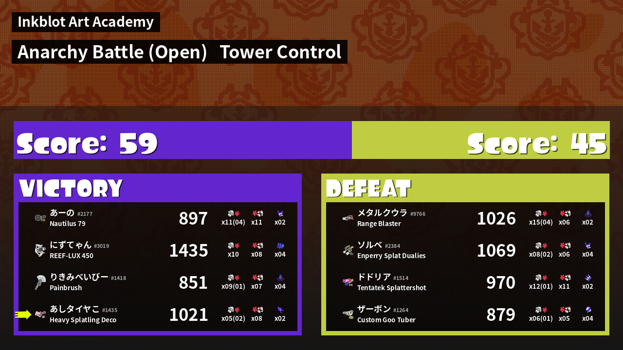 | Mode | Tower Control - Anarchy Battle (Open) | ||