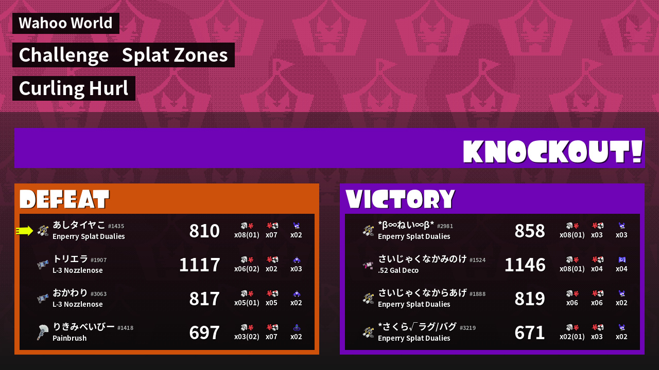 | Weapon | Enperry Splat Dualies ( Curling Bomb / Triple Splashdown) | ||