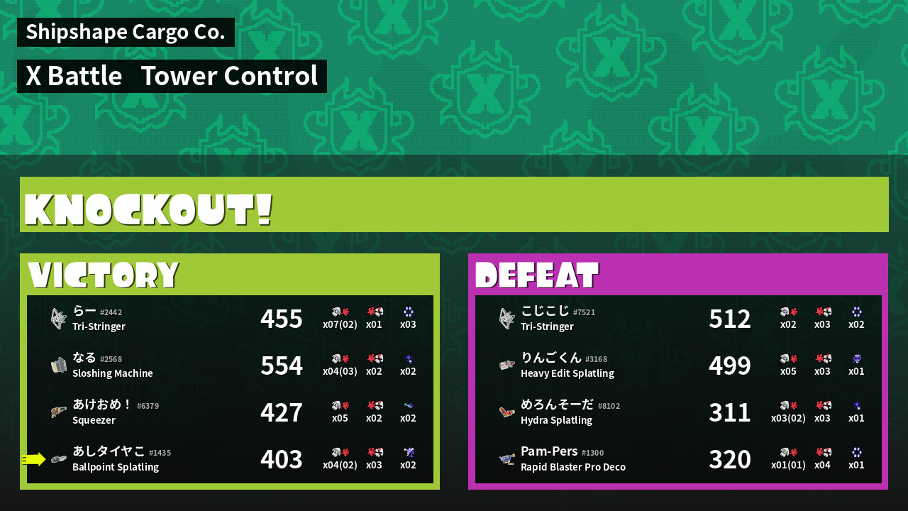 | Medals | #1 Ground Traveler #1 Inkjet User #2 Splat Assister | ||