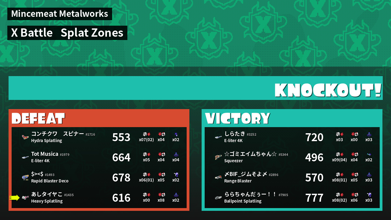 | Mode | Splat Zones - X Battle | ||