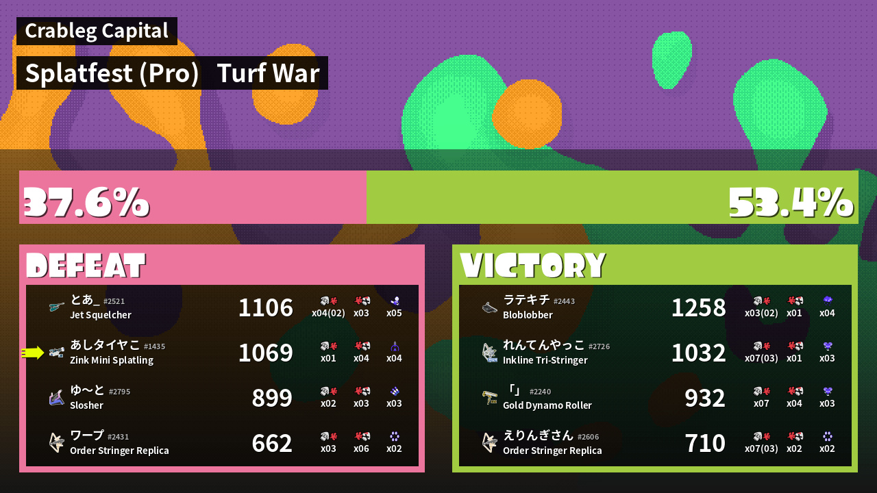| Mode | Turf War - Splatfest (Pro) | ||