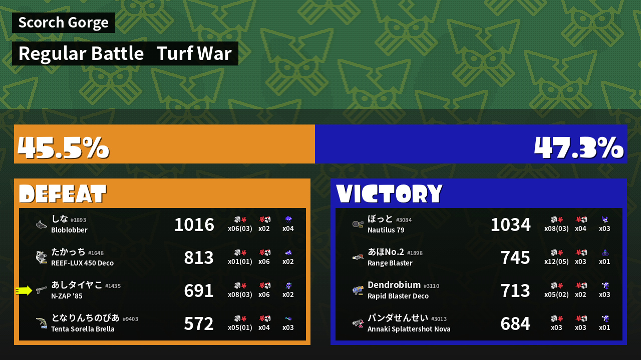 | Mode | Turf War - Regular Battle | ||