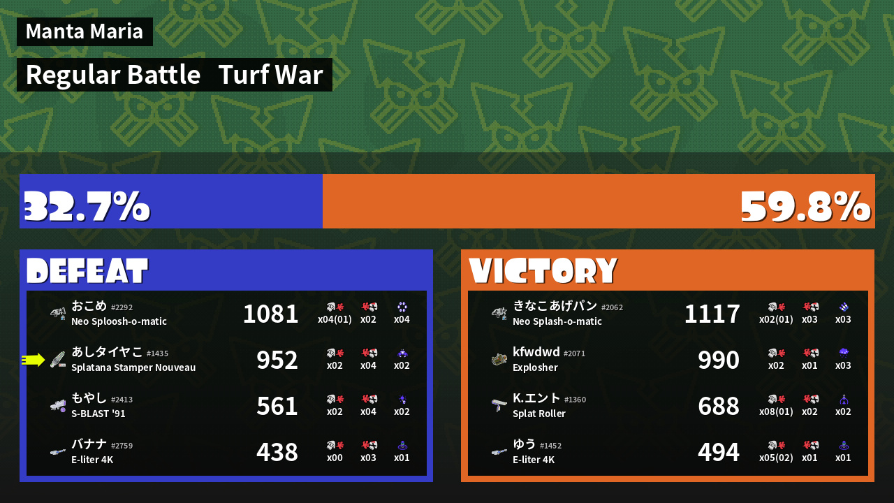 | Medals | #1 Popular Target #1 Enemy-Base Inker #1 Ground Traveler | ||