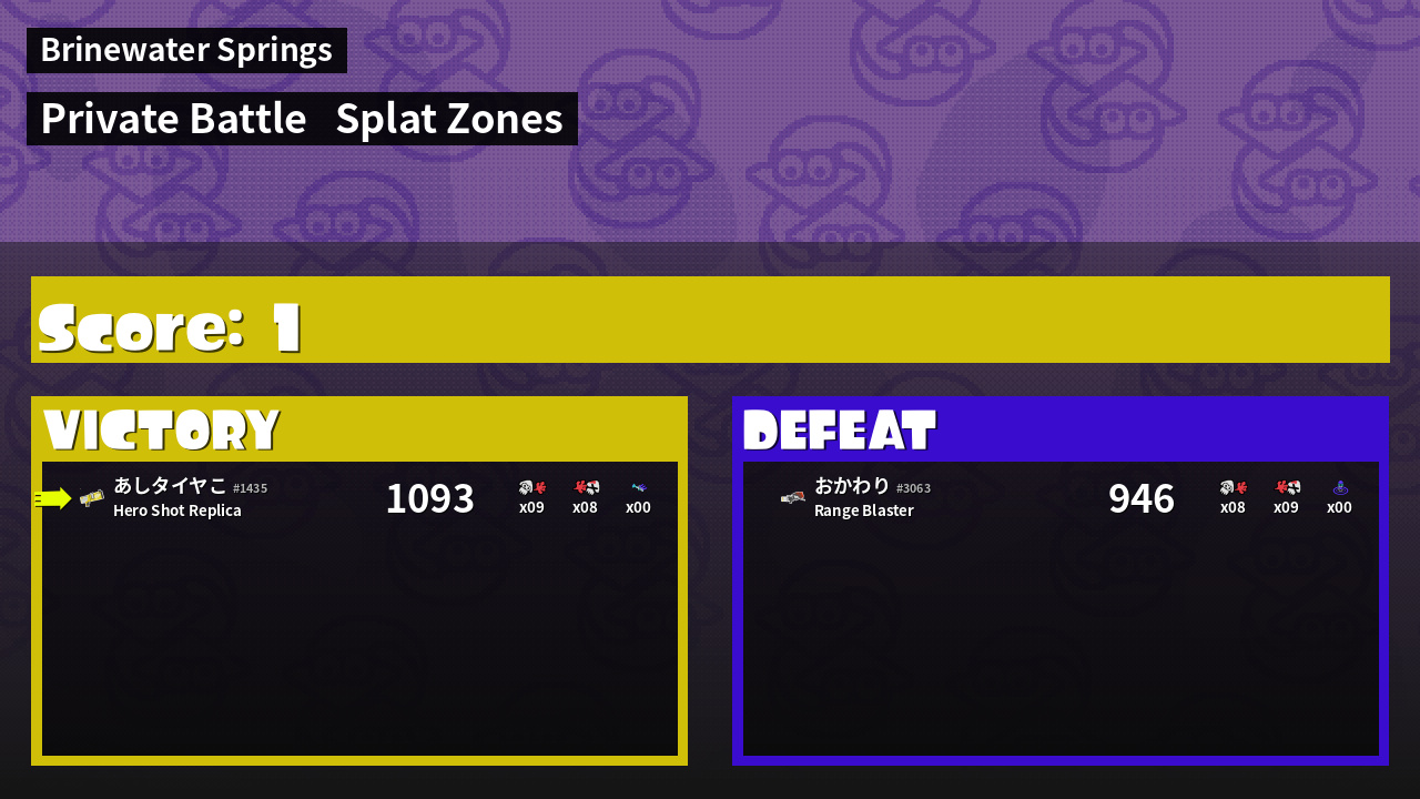 | Mode | Splat Zones - Private Battle | ||