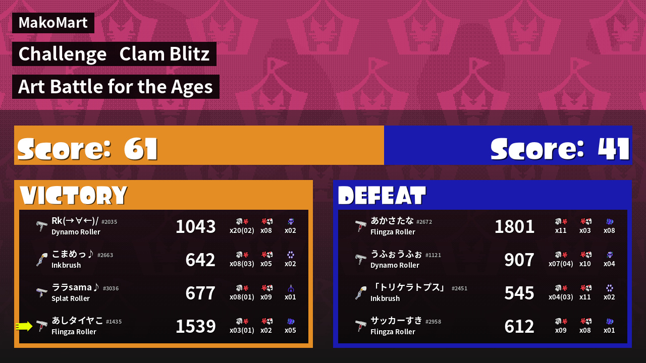 | Weapon | Flingza Roller ( Ink Mine / Tenta Missiles) | ||