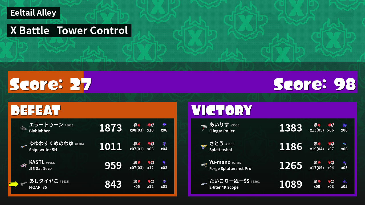 | Mode | Tower Control - X Battle | ||
