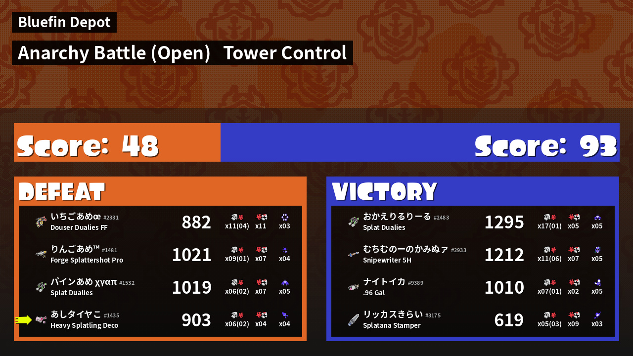 | Mode | Tower Control - Anarchy Battle (Open) | ||