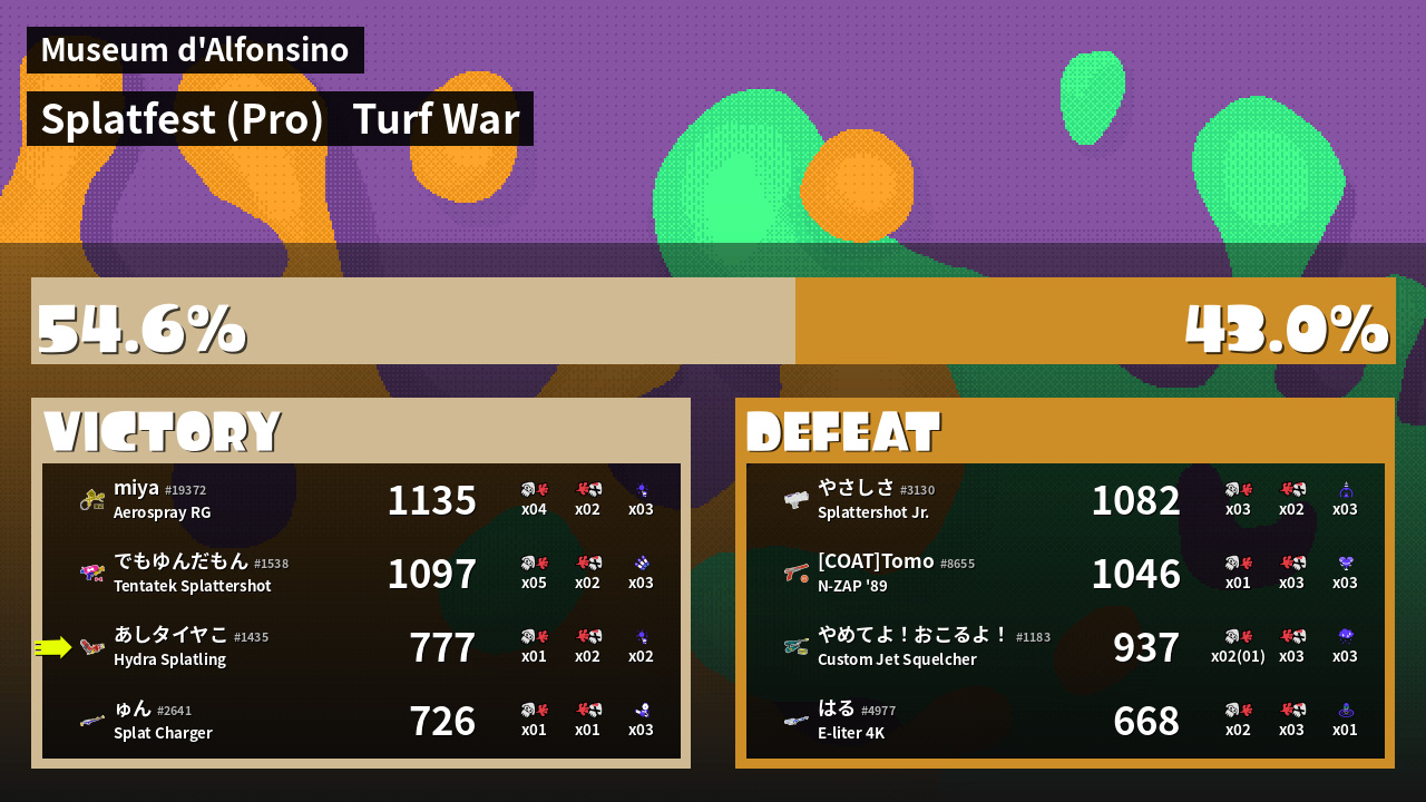 | Mode | Turf War - Splatfest (Pro) | ||