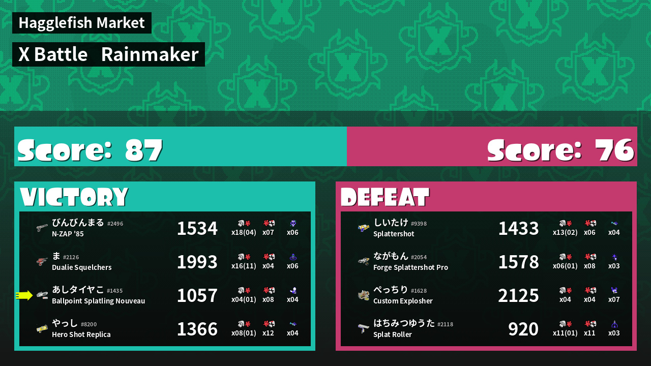 | Weapon | Ballpoint Splatling Nouveau ( Ink Mine / Ink Vac) | ||